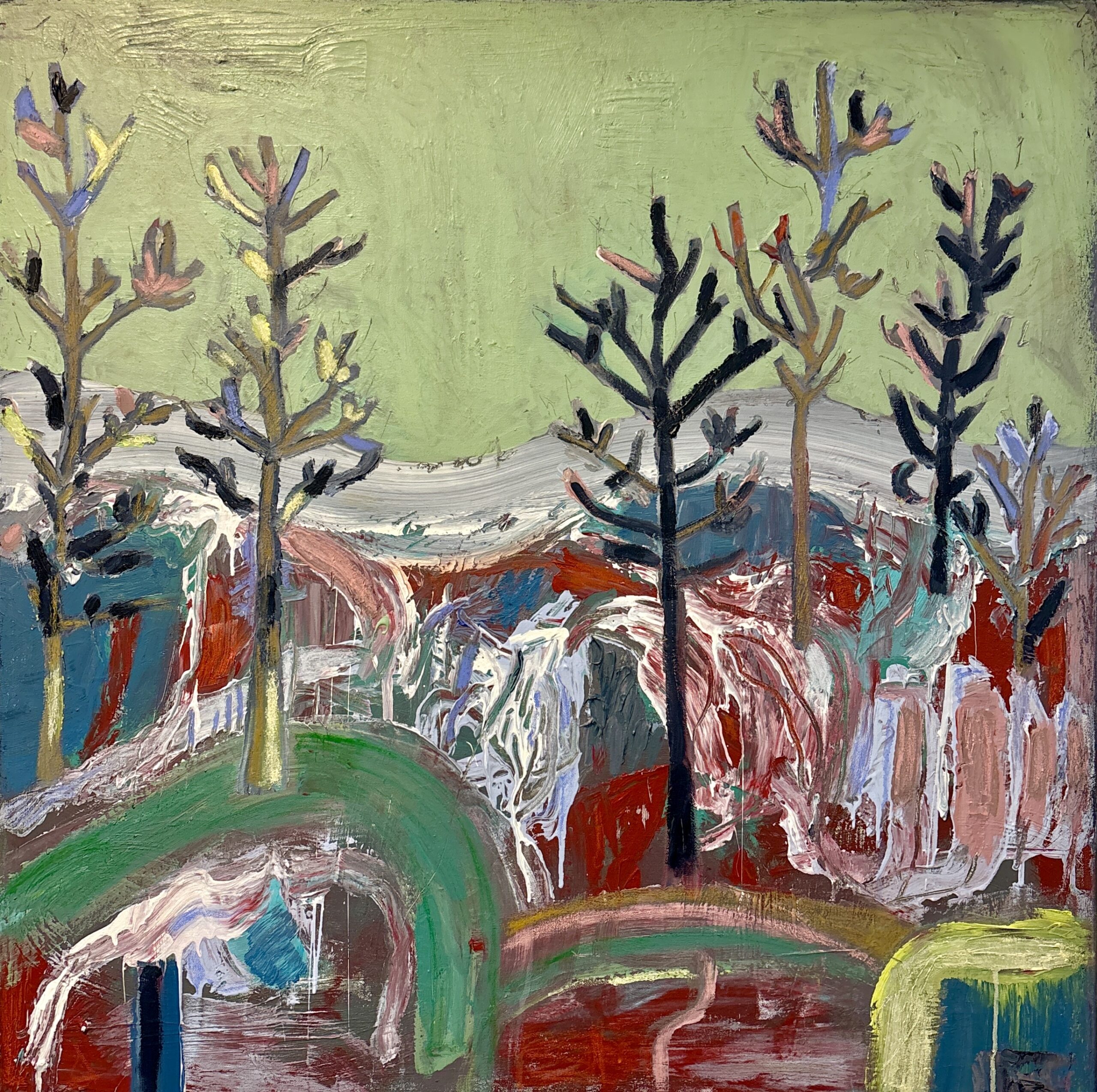 Acrylic and Ash on Raw Canvas