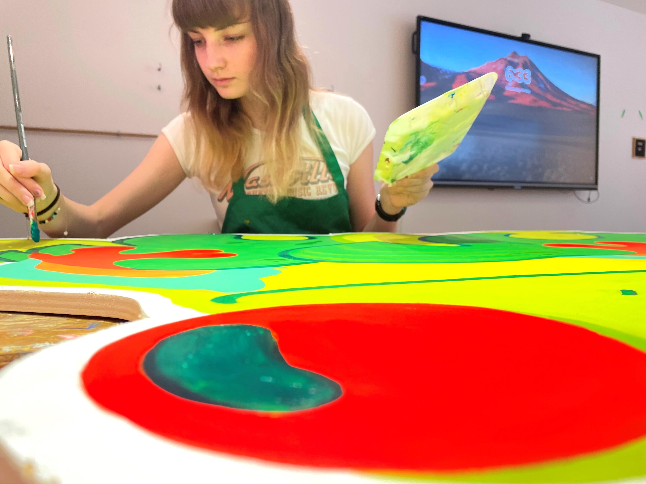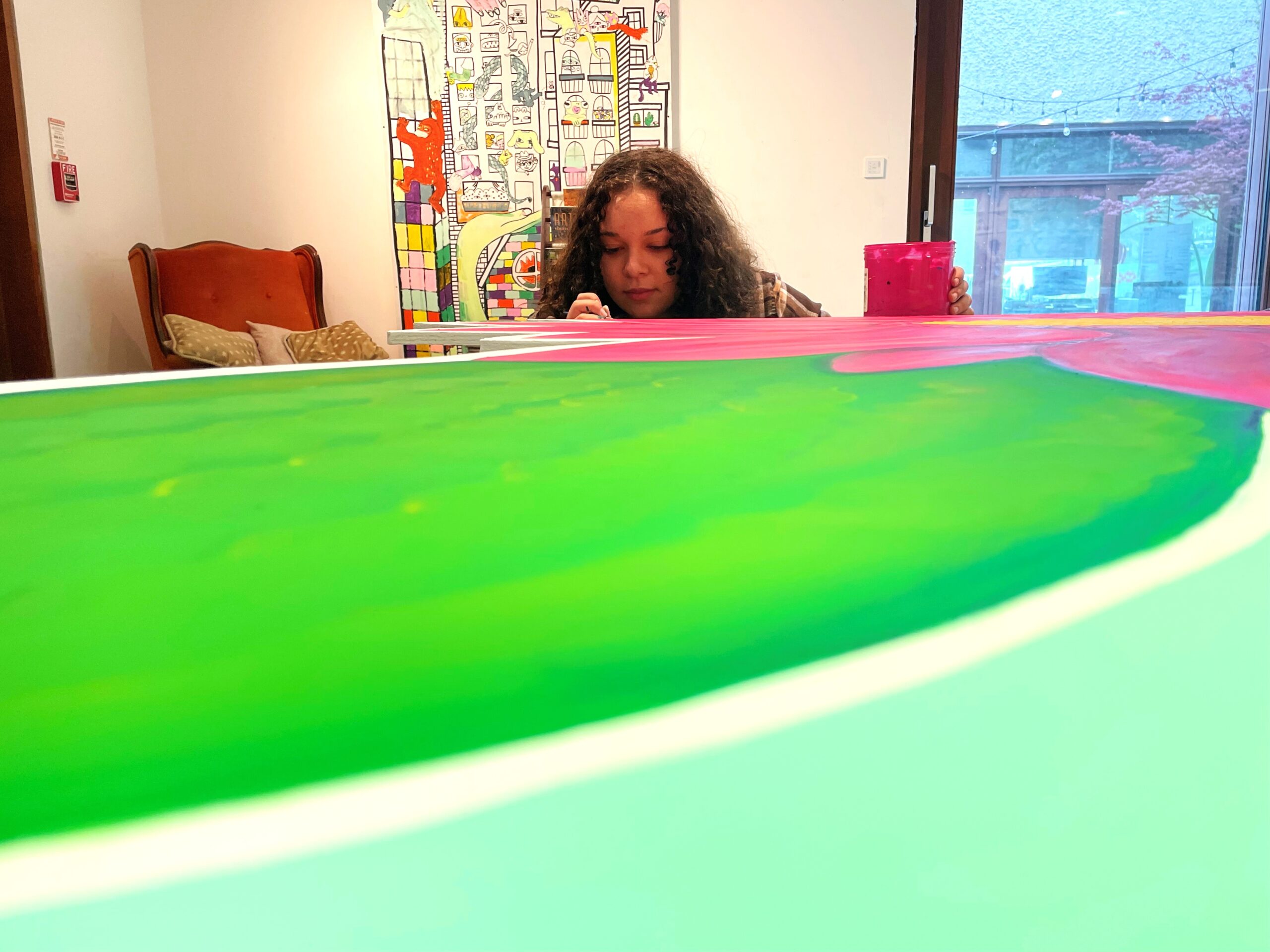 January Paige (she/her) is a Queer, Georgian Bay Metis painter, bead worker and writer, living and creating in what is currently referred to as Barrie, Ontario. Using bold, organic linework and bright, flat colors her work often explores themes of nature, community and generational healing as she is inherently influenced by her ancestors and the language of the land, working in collaboration with her younger self.