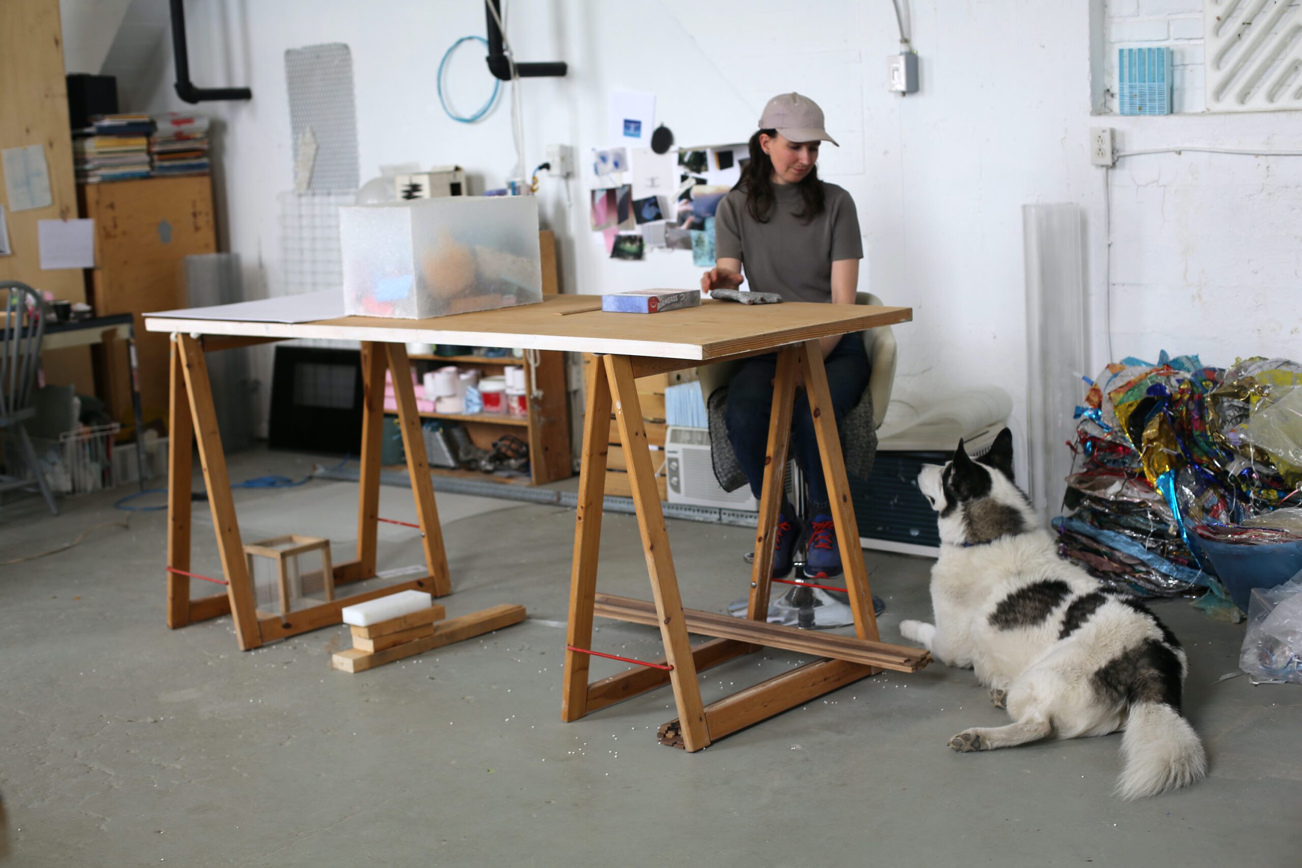 Tegan Moore works in sculpture and installation to question the built environment and its relationship with the body through granular, intuitive, and research-based investigations. Her practice embraces the perpetual use of discarded material, complicating their time and value flows and the dominant systems they circulate within. Recent exhibitions were presented at Centre CLARK, Montréal, Galerie Nicolas Robert, Montréal, Canadian Cultural Centre, Paris, YYZ Artists’ Outlet, Toronto. Holding a BFA from Emily Carr University and an MFA from Western University, she is now based in Tio’tià:ke / Mooniyang / Montréal. Moore also works collaboratively with plastic pollution research group The Synthetic Collective and co-organizes the project space SUPPORT.